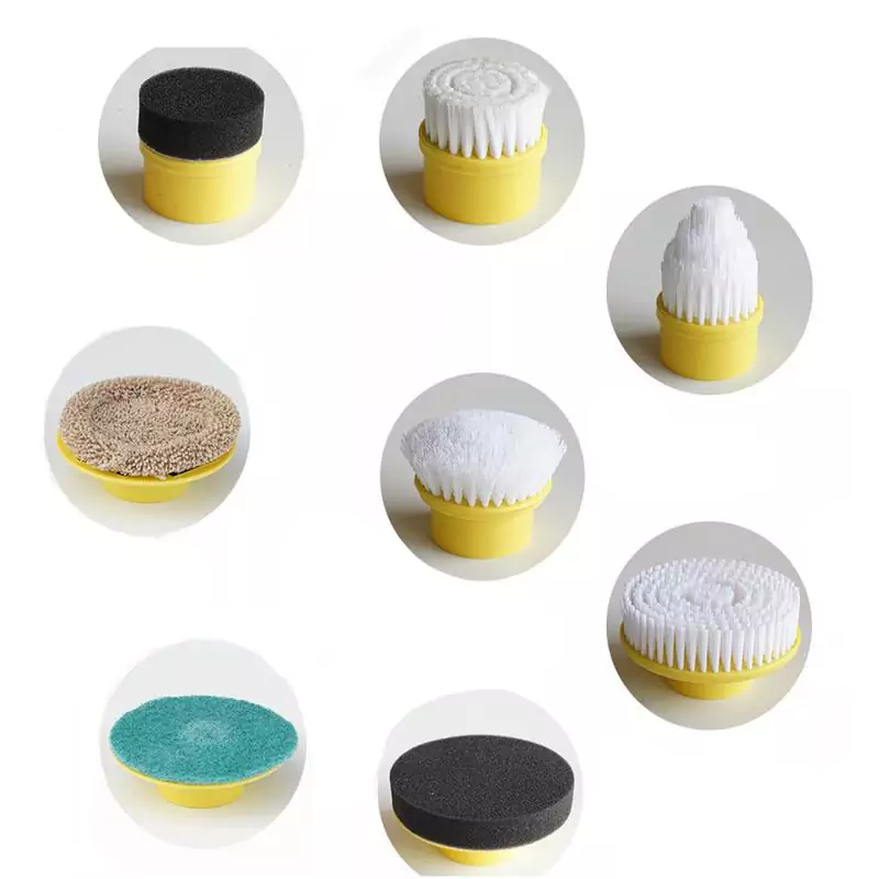 Equipado com 10 cabeças de escova, que são escova plana, escova de superfície curvada, escova de cabelo pontiaguda, escova de pano macio, escova de esponja, almofada de limpeza, escova de limpeza de poeira, escova de limpeza de óleo, 2 pano de polimento, adequado para mais ambientes de uso.