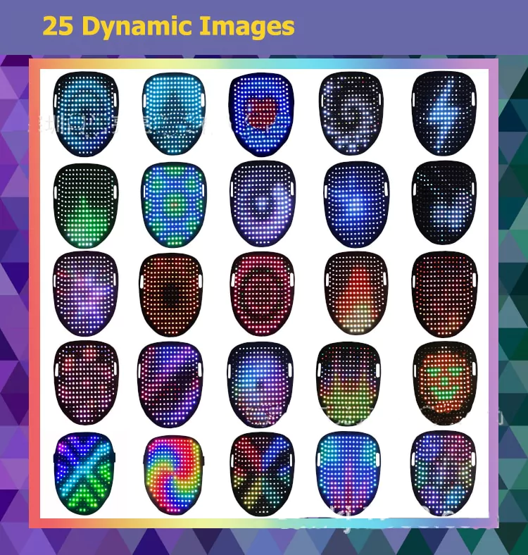 Máscara de LED full face, com conexão via bluetooth com o seu celular. Você pode personalizar com desenhos, vídeos, fotos, animações e textos.